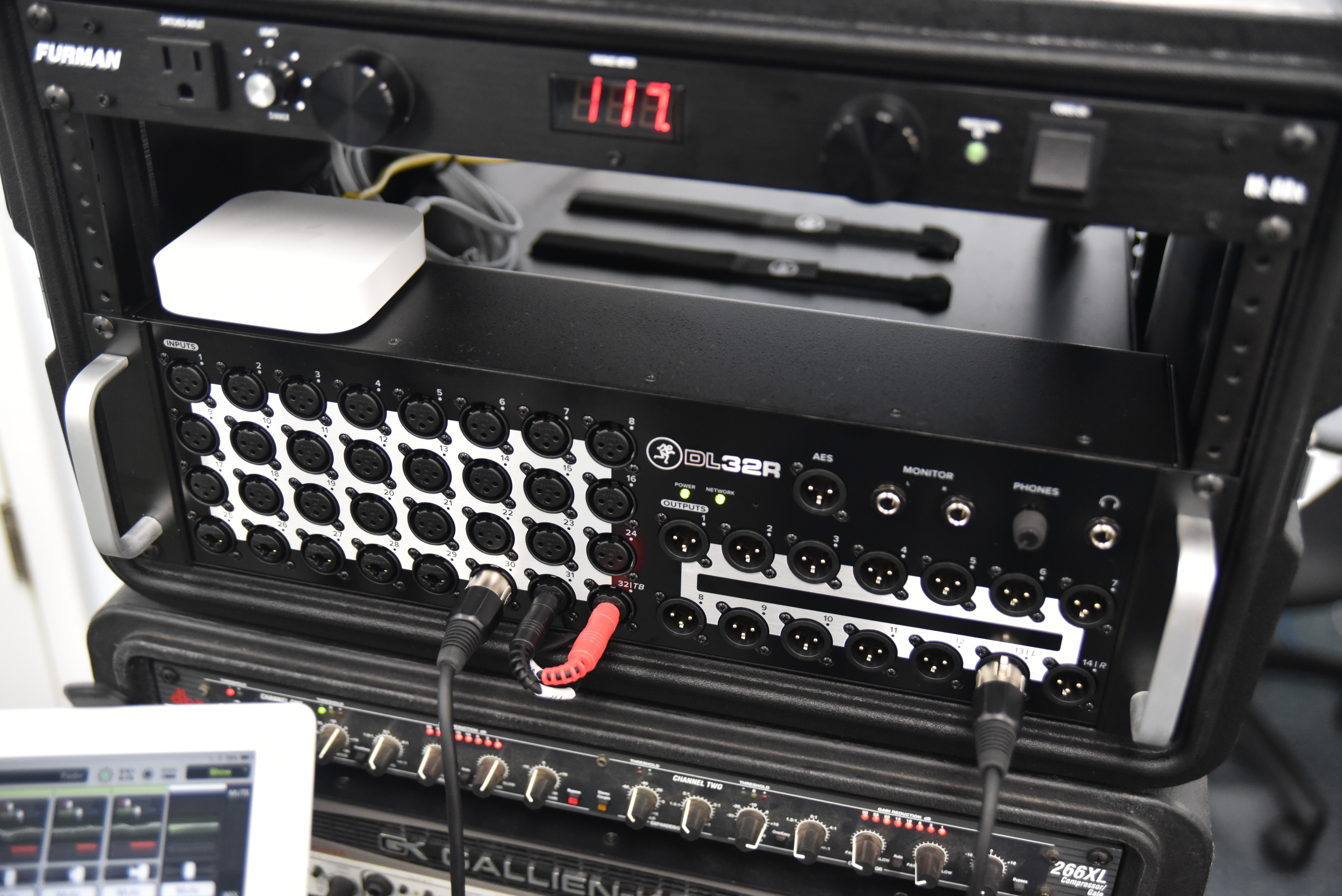 Why? Because new toys arrived and we’re itching to use them for our upcoming shows. We’ve upgraded our audio mixer from the Mackie DL1608 to the Mackie DL32R and put it in a new Gator road rack case with a Furman power distribution system, an Apple AirPort Express Wi-Fi router and a Western Digital 1TB USB hard drive.